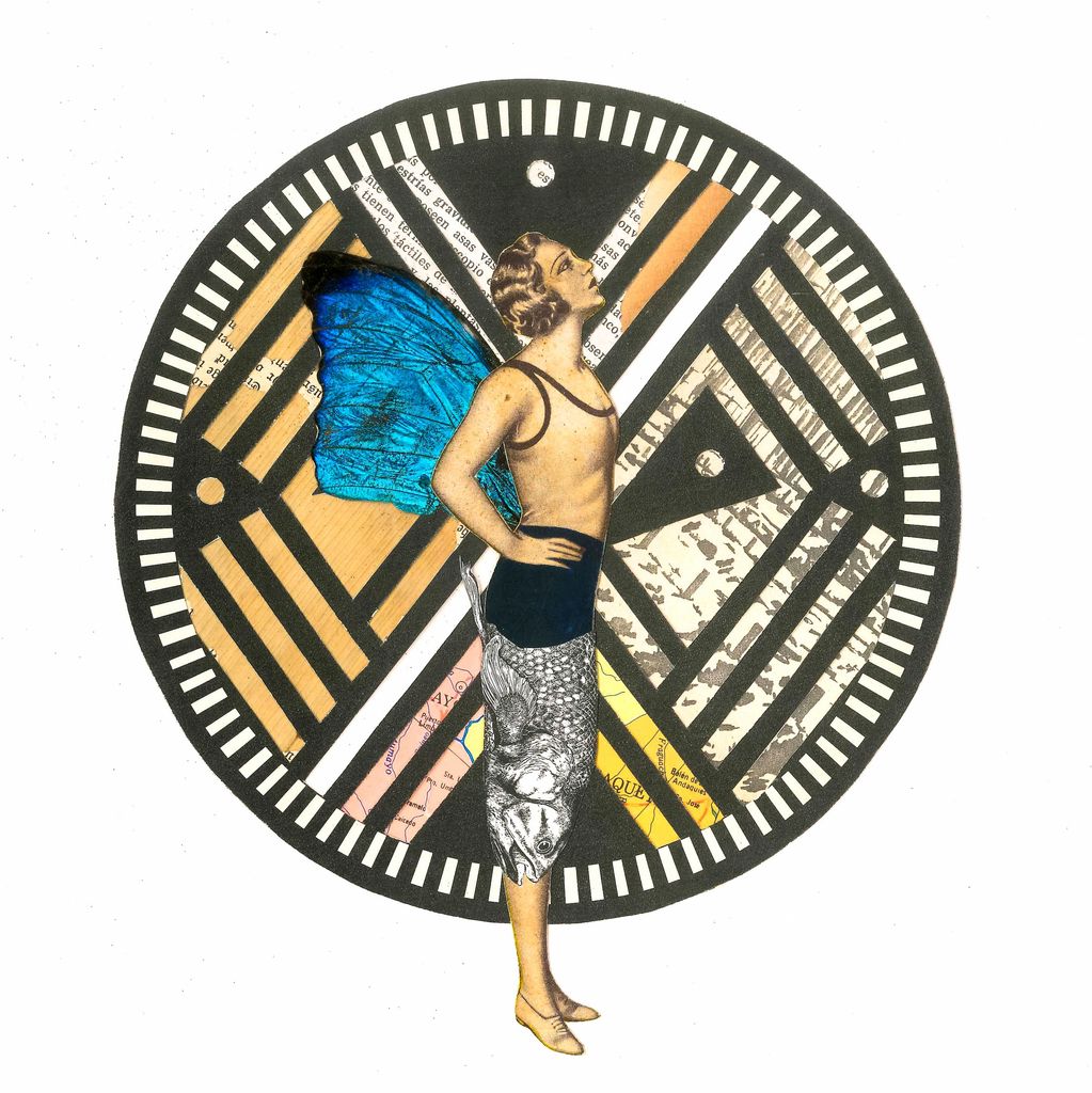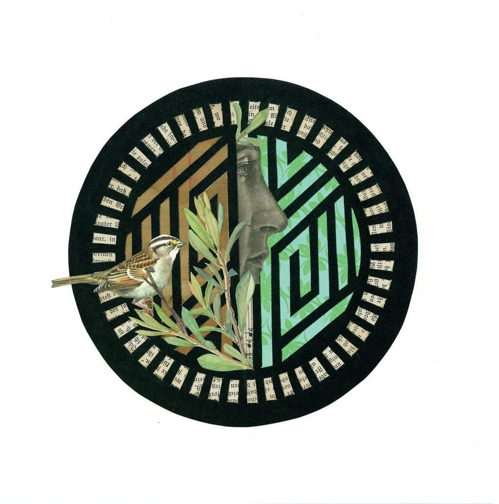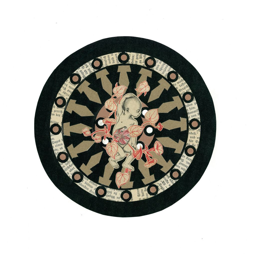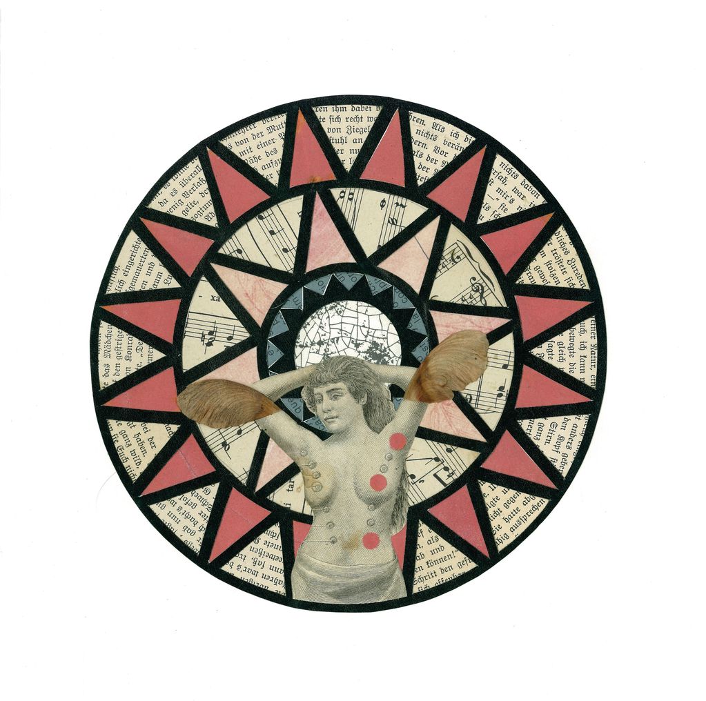 En esta serie de collages se configuran el encuentro de distintas cosmogonías pensadas a partir del círculo, como esa figura concebida con un valor de un diseño puro. La plenitud de lo simple, lo infinito contenido en la perfección de la armonía.