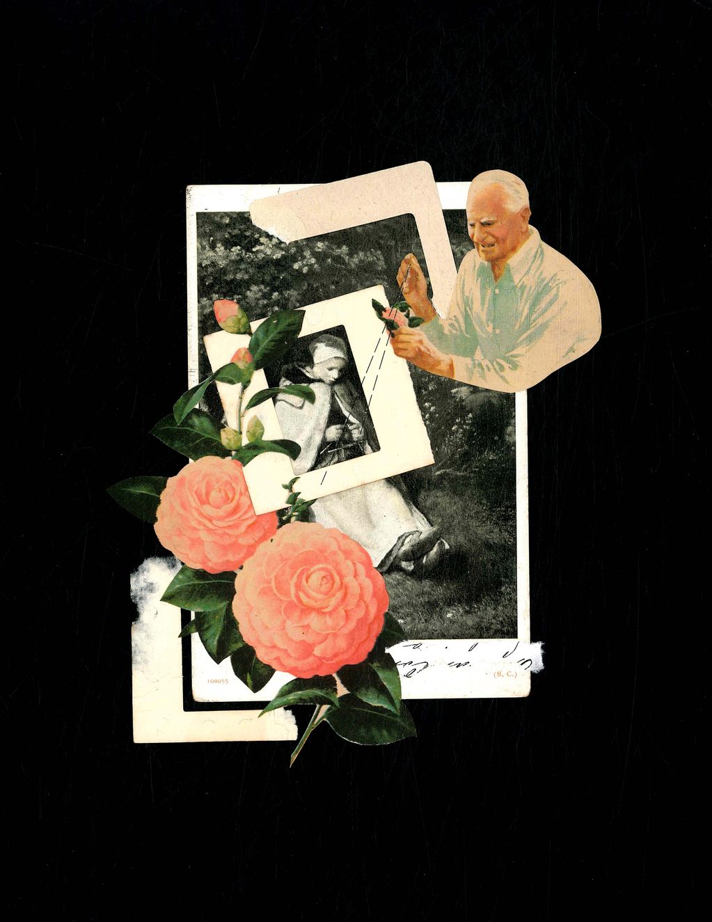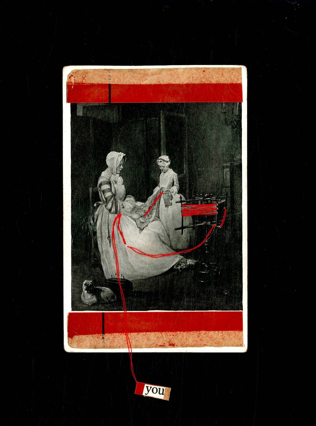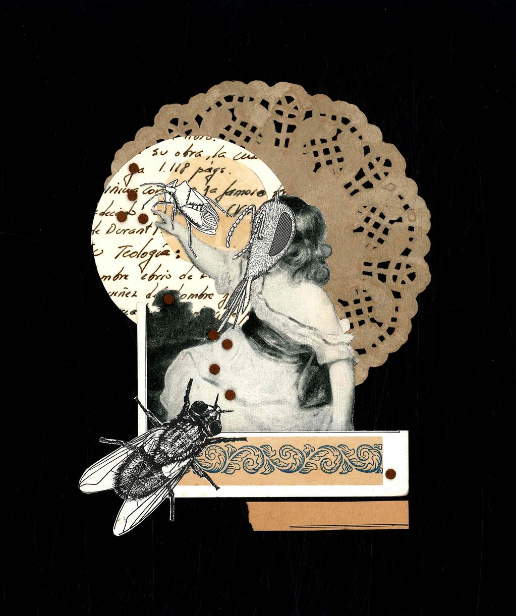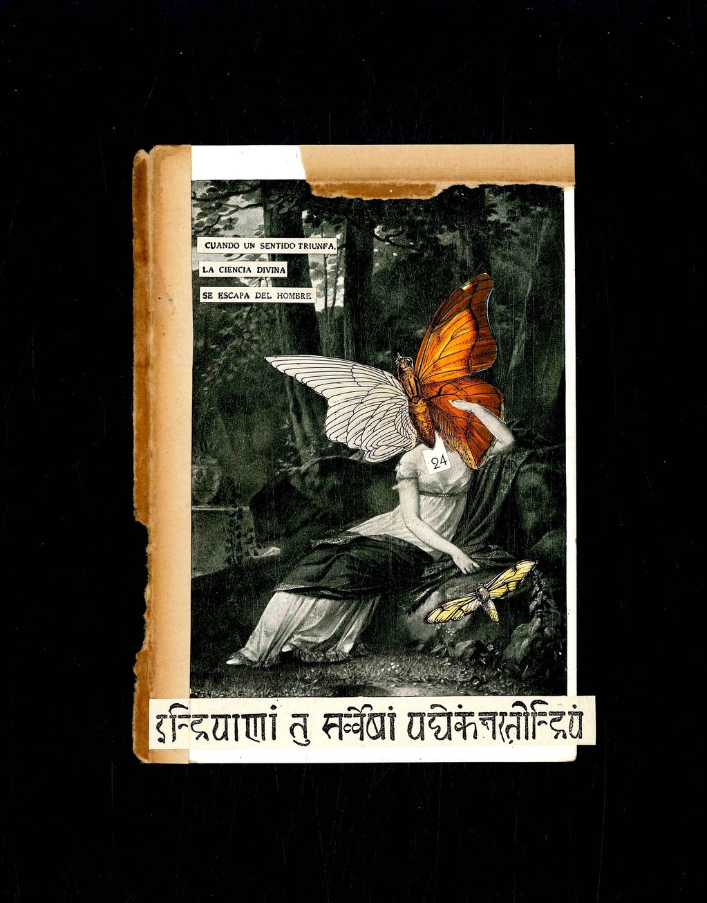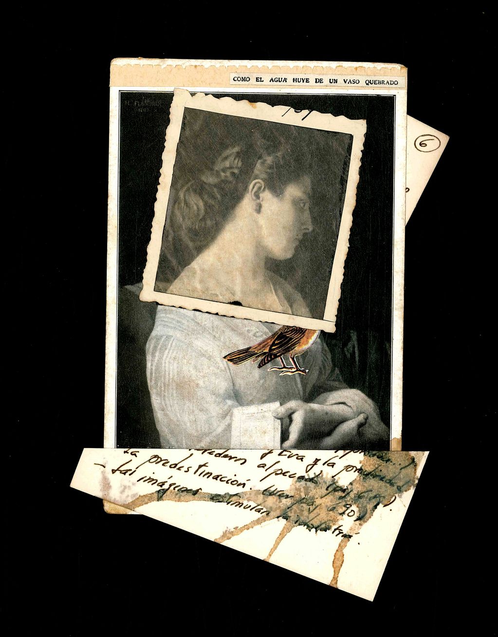 Las postales sueles incluir imágenes de lugares visitados, personajes reconocidos, obras de artistas destacados etc... Un recurso para mantener la comunicación con alguien, o para llevar un recuerdo de algo que llamó la atención de manera especial. En el caso de esta serie de collages, ese lugar visitado es el inconsciente. El tránsito a través de un paisaje imaginario, surreal; en donde los símbolos y la libre asociación de palabras se hacen presentes. Un despliegue de absurdos que confirman nuestra naturaleza creadora, capaz de imaginar nuevos universos, a los que es posible acceder solo si se lleva consigo la llave de la sorpresa, del asombro.